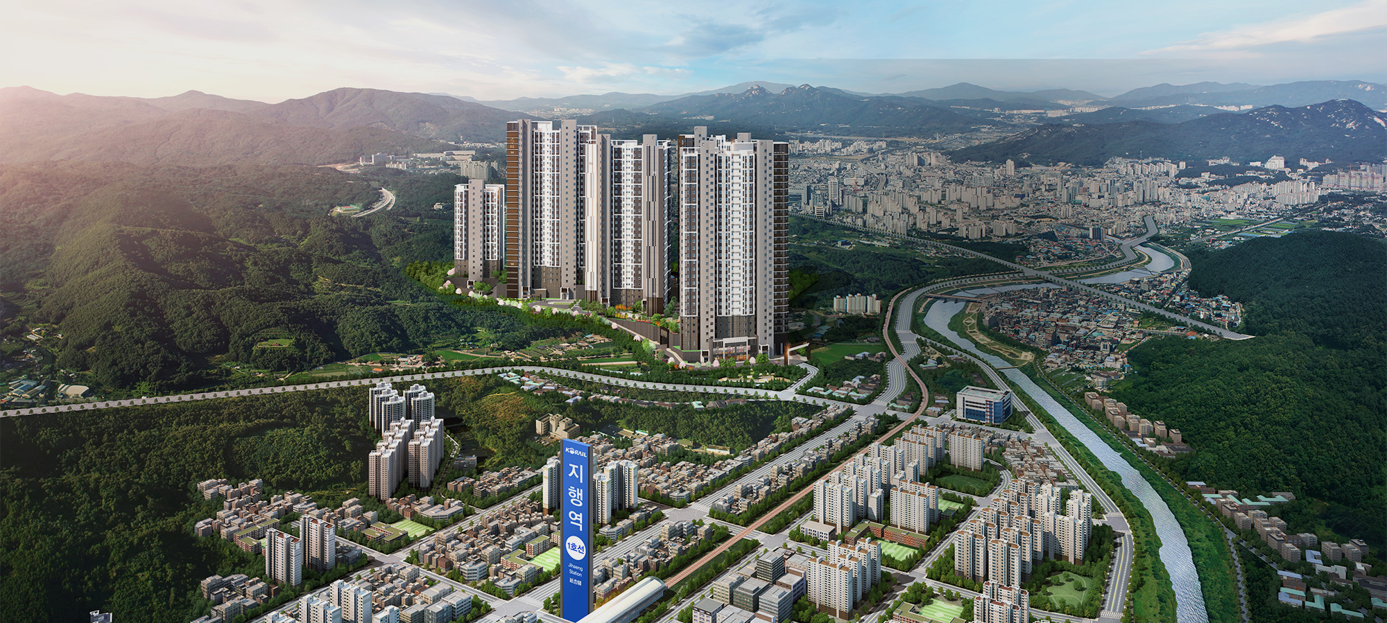 ※ 본 개발계획도상에 표기된 사지 개발 및 교통, 학교 등의 계획에 대한 사항은 추후 관계기관의 사정에 따라 변경 및 취소 될 수 있습니다.